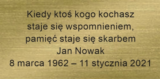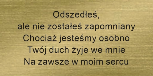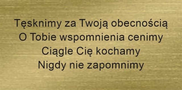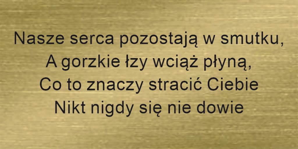 Tzw. personalizowanie urny lub trumny często odbywa się za pomocą grawerowanej plakietki. To piękny sposób na wyrażenie miłości, tęsknoty i żalu po stracie bliskiej osoby. Wiele gotowych przykładów można znaleźć w dziale: ’Personalizacja urny’.