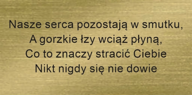 - „Twoje dobroć i miłość pozostaną z nami na zawsze. Będziesz zawsze w naszych sercach.”