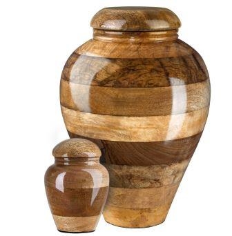 Nowoczesne urny, łączą w sobie klasyczne drewniane wykonanie oraz nowoczesność. Idealny kształt urny przyciąga uwagę i wzbudza podziw. Doskonałe połączenie drewna i metalowego, złotego pierścienia tworzy niepowtarzalny wygląd urny.