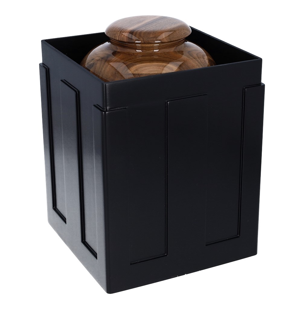 Ta piękna i oryginalna urna w kształcie piramidy wykonana jest z drewna mango, które ma bogatą, ciemną tonację, która jest bardzo elegancka. Niektórzy klienci wolą trzymać się formalności tego prostego wzoru, podczas gdy inni decydują się na dodanie grawerowanej tabliczki lub serii odcisków łap na jednej stronie piramidy.